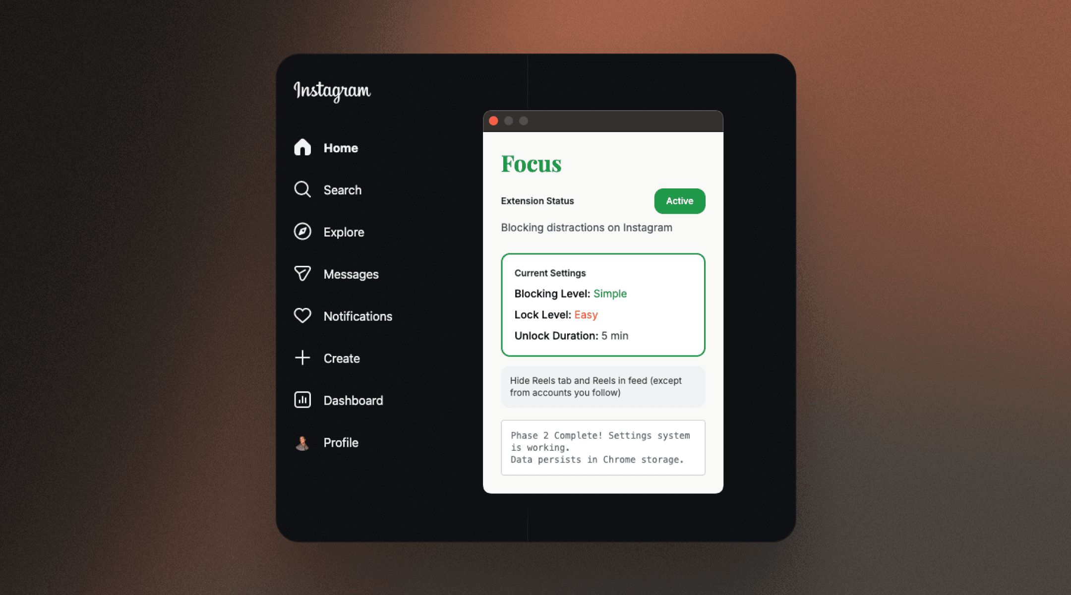 For the idea, I'm personally tired of the Reels rabbit hole. Social media these days feels less and less of something to keep us connected and more of a distraction and marketing tool. I use a similar extension already, but there are things I'd improve. So why not build my own version? If it works well enough, maybe I'll actually launch it.